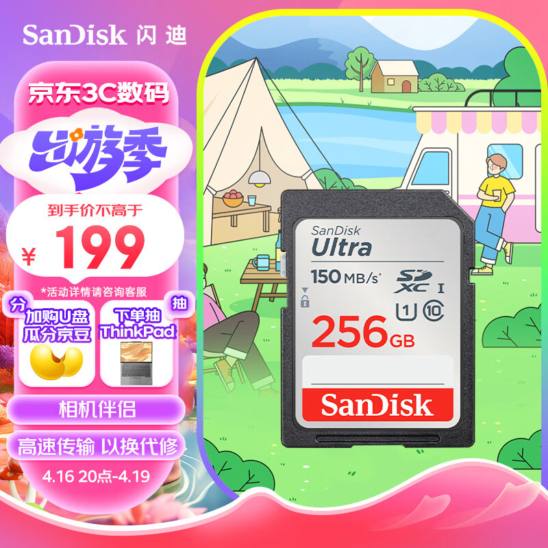 闪迪(SanDisk)256GB SD存储卡 C10 高速版内存卡 提速升级 读速150MB/s 捕捉全高清 数码相机理想伴侣价格:199.00元!