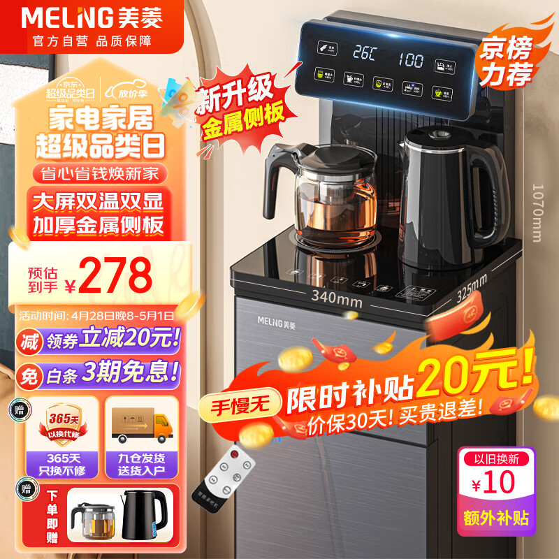 美菱(MeiLing)茶吧机家用饮水机大屏下置式水桶饮水机 双温双显双出水口多功能全自动智能温热款MY-C921价格:298.00元!