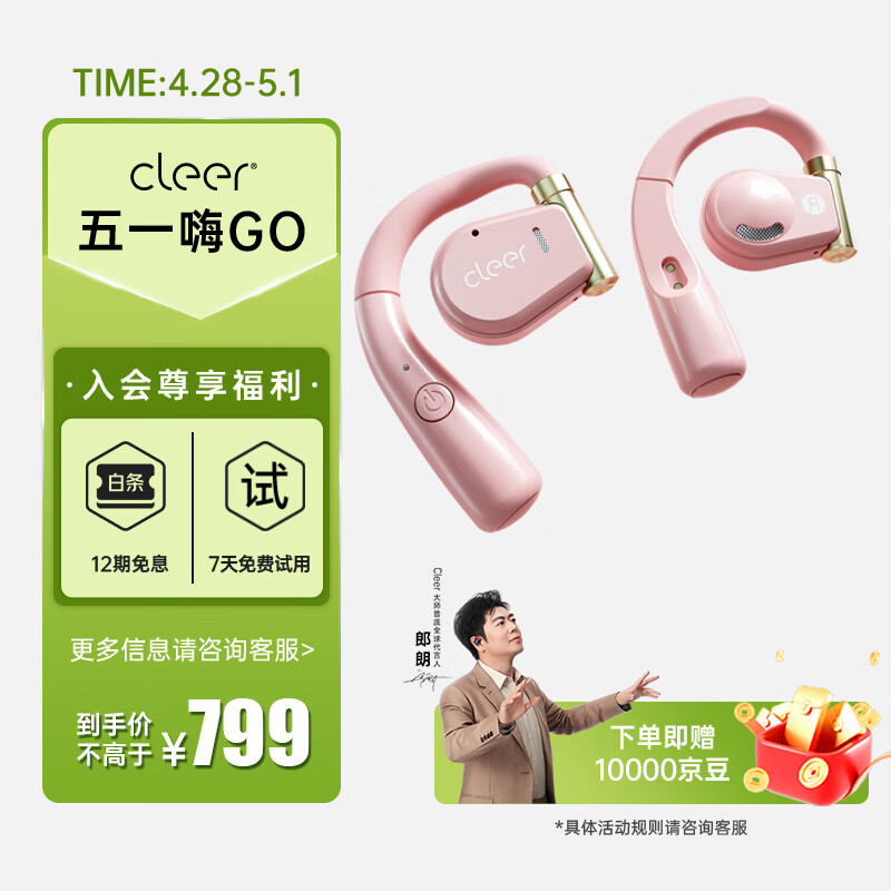 cleerARC音弧蓝牙运动跑步夹耳式耳机无线开车骑行骨传导升级开放挂耳式气传耳麦适用苹果华为节日礼物 云彩粉【充电盒升级款-续航18H】价格:1099.00元!