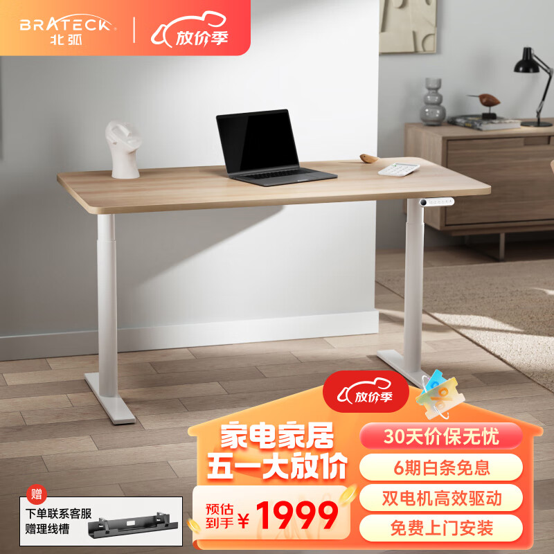 Brateck双电机电动升降电脑桌 北弧站立办公升降书桌 升降台 M1黄1.2米价格:2299.00元!