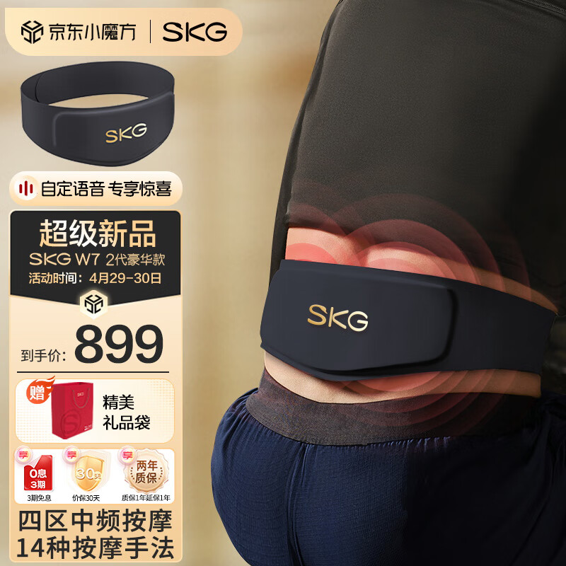 skg腰部按摩仪 四区揉捏缓解酸累 智能按摩器腰带可拆洗 送男女友生日母亲节礼物 W7二代豪华子夜蓝价格:999.00元!