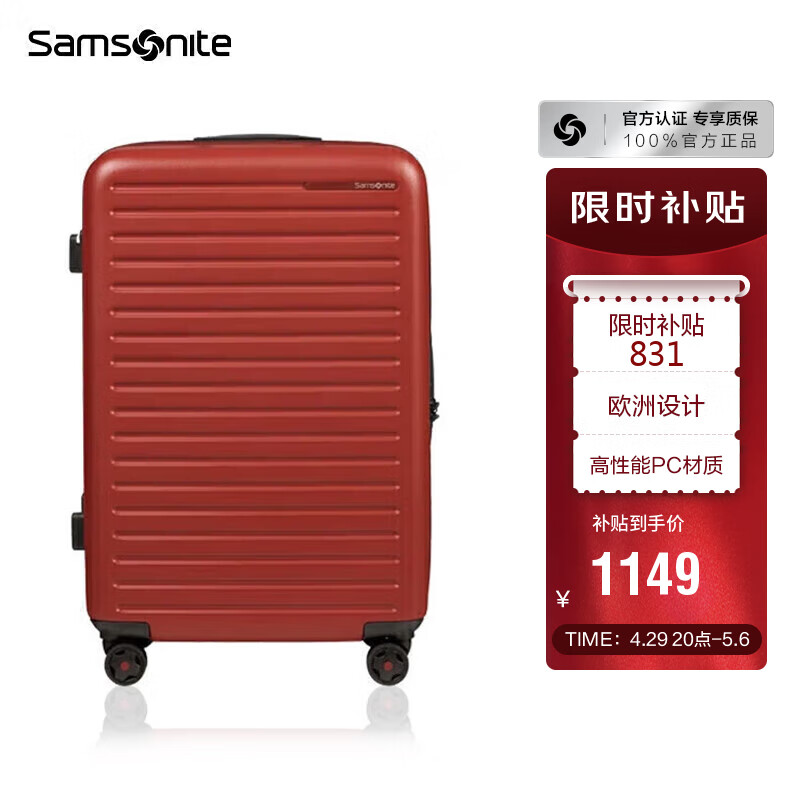 新秀丽(Samsonite)行李箱欧洲设计拉杆箱旅行箱登机箱红色20英寸KF1*00001价格:1149.00元!