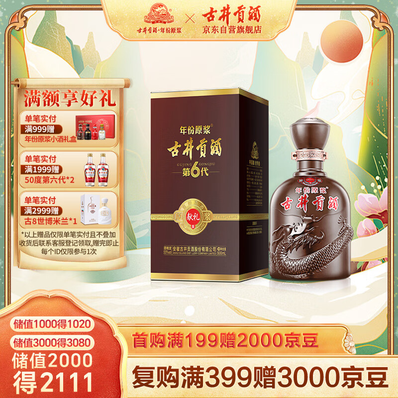 古井贡酒年份原浆 献礼版 浓香型白酒 55度500ml*1瓶 单瓶装价格:112.94元!