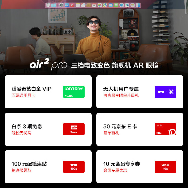 XREAL Air 2 Pro智能AR眼镜 电致变色调节 DP直连Mate60/苹果15系列 非VR眼镜 同vision pro投屏体验价格:3299.00元!