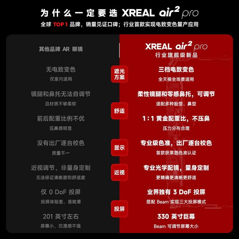 功能:便携巨幕,近视可配镜,电致变色,可悬停画面