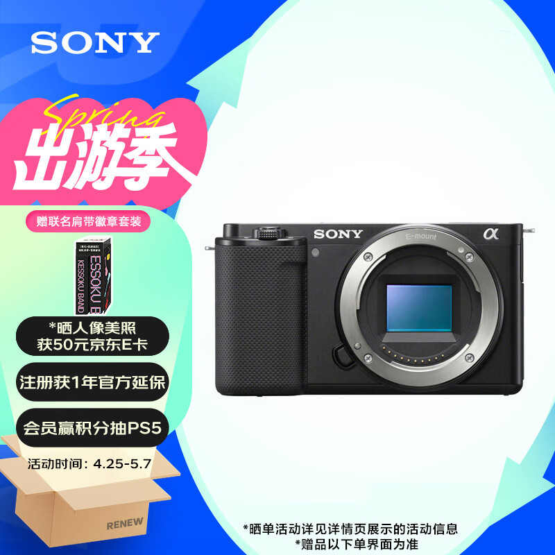 索尼(SONY)ZV-E10 半画幅微单相机 单机身 美肤拍照 颜值机身 精准对焦 VLOG APS-C画幅 黑色价格:4399.00元!