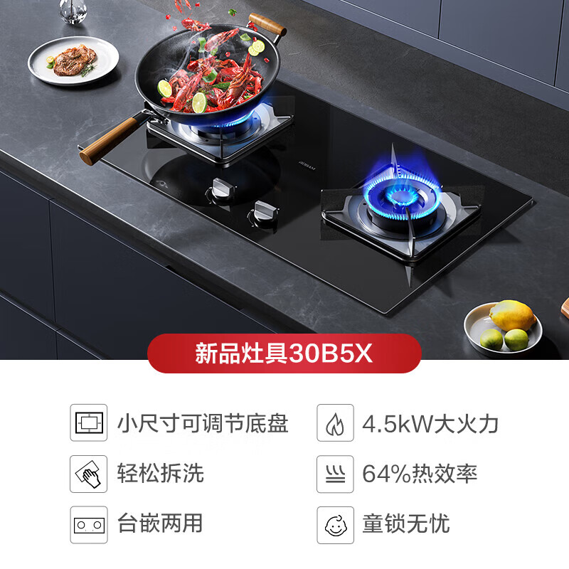 老板燃气灶双眼燃气灶天然气4.5kW煤气灶具小尺寸台嵌两用可调节底盘高热效率30B5X 【百搭尺寸】4.5kW天然气价格:1155.00元!