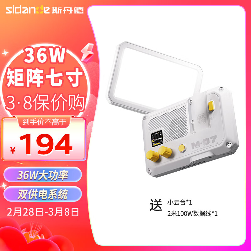 斯丹德(sidande)矩阵七寸(白色)补光灯36W大功率摄影灯人像灯光常亮灯柔光灯小型婚庆便携拍照灯 价格:229.00元!