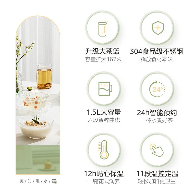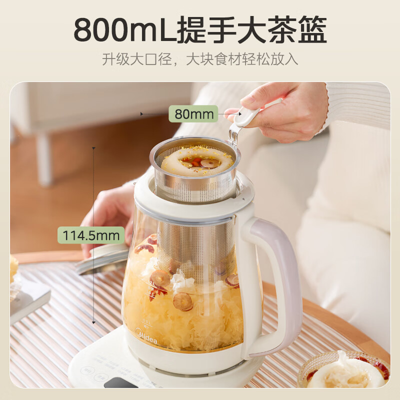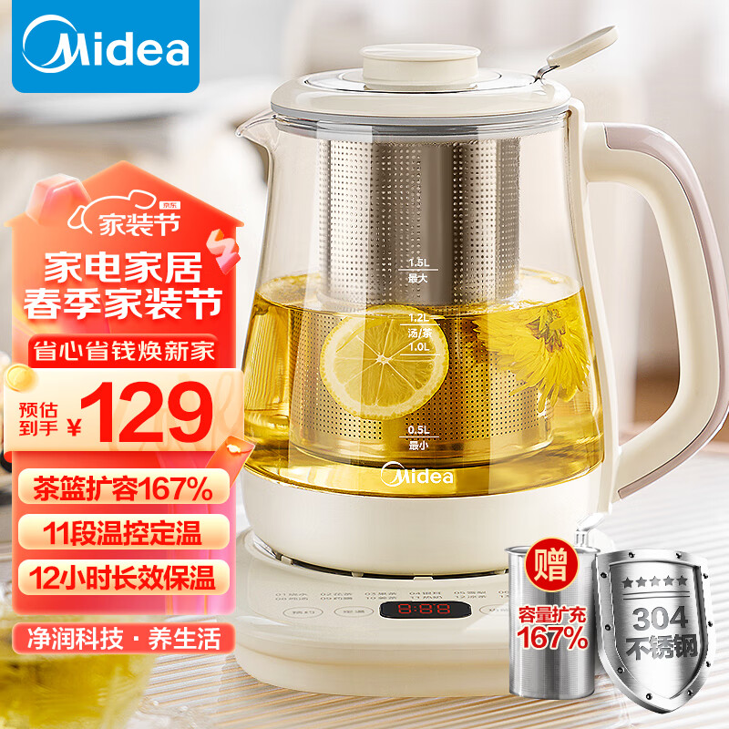 美的(Midea)养生壶 煮茶壶 恒温水壶 智能蒸炖煮 烧水壶办公室保温花茶壶提手大茶篮 1.5L大容量 MK-YS01C价格:129.00元!