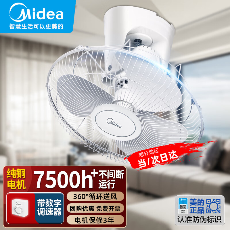 美的 顶扇楼顶扇吸顶扇商用学校宿舍电风扇摇头吊顶工业大风力节能壁扇吊扇带调速器 FD40-11A价格:219.00元!