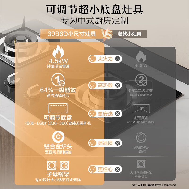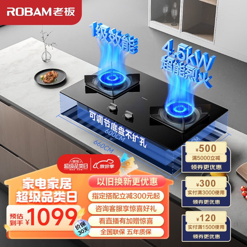 老板(Robam)JZT-30B6D家用燃气灶天然气灶双灶嵌入式燃气灶 4.5kW小尺寸可调节灶具灶台煤气灶燃气灶一级能效价格:1099.00元!