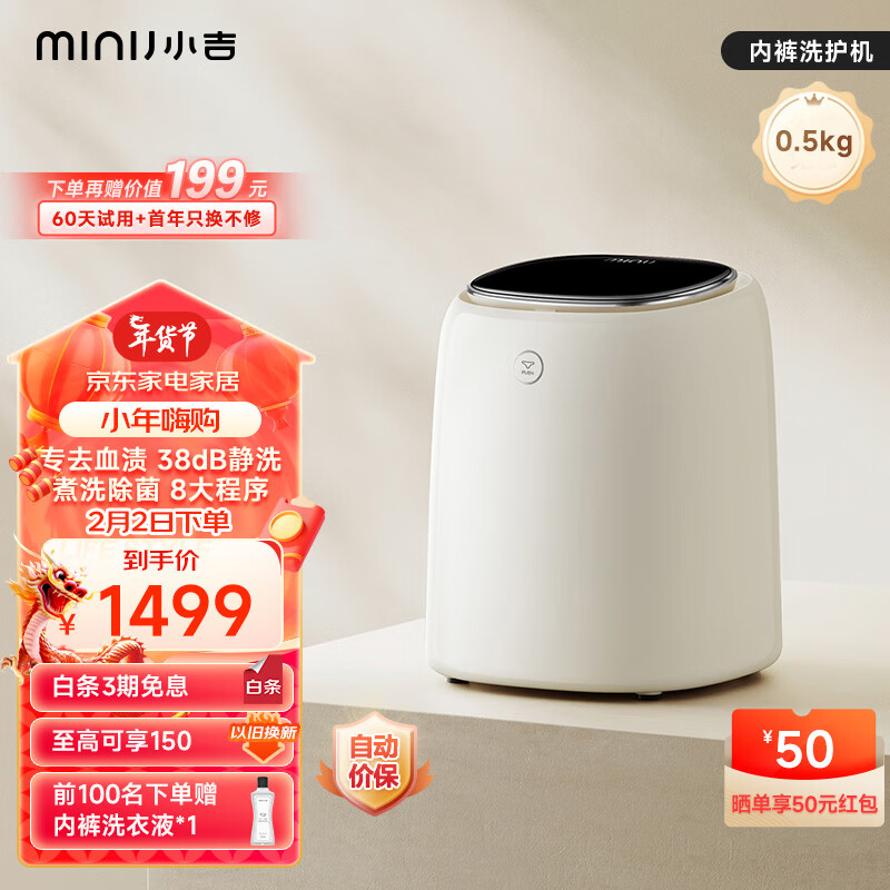 小吉(MINIJ)0.5kg内裤洗衣机 全自动内裤机专用高温煮洗洗内裤机变频内衣洗衣机 U10-M价格:1499.00元!
