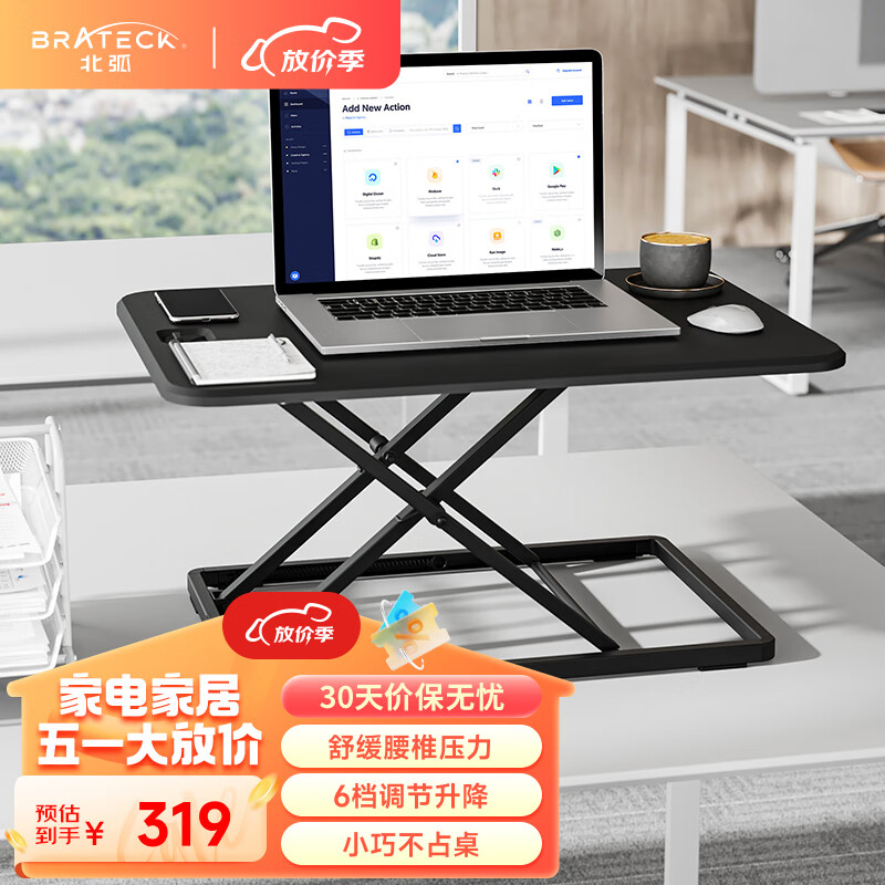 Brateck升降电脑桌 北弧站立办公升降台 站立式电脑升降支架 D250黑价格:369.00元!