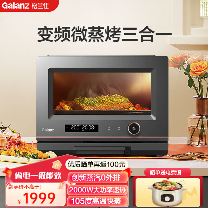 格兰仕(Galanz)微蒸烤一体机 变频微波炉烤箱蒸箱多功能 20L家用 900瓦速热 蒸汽直喷 不锈钢内胆 G0-RTQF2V 省电一级能效价格:2999.00元!