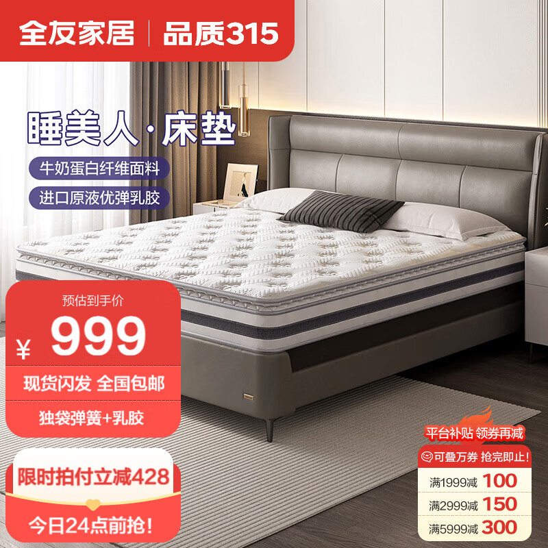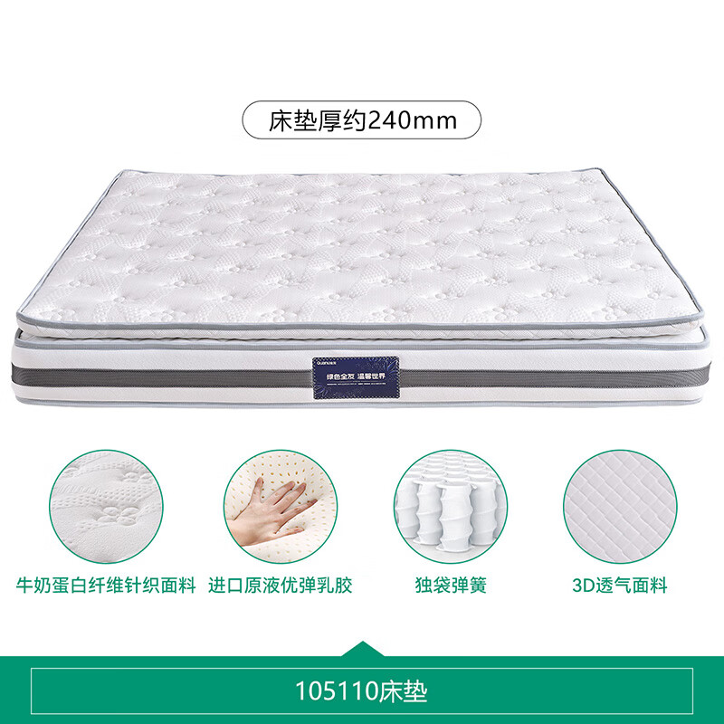 全友家居 泰国进口乳胶床垫厚 独立袋装弹簧两面可用偏软105110价格:1427.14元!
