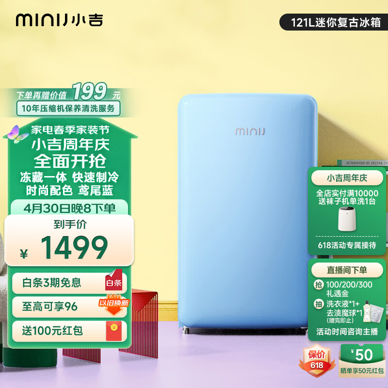 小吉(MINIJ)迷你复古色彩系小冰箱 冷冻冷藏一体 租房宿冰箱小型家用舍办公室节能低噪客厅冰箱礼物 BC-121FA价格:1719.00元!