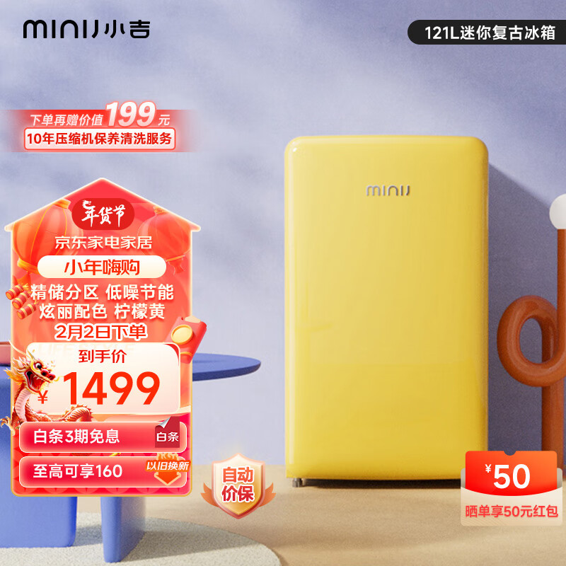 小吉(MINIJ)迷你复古色彩系小冰箱 冷冻冷藏一体 租房宿舍办公室家用节能低噪 BC-121CY价格:1499.00元!