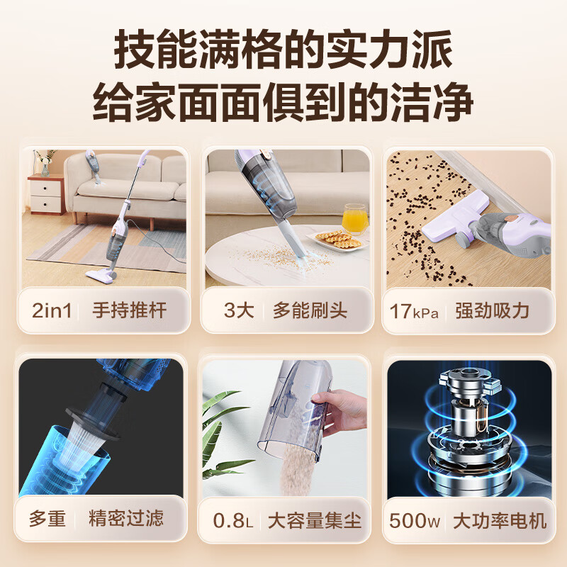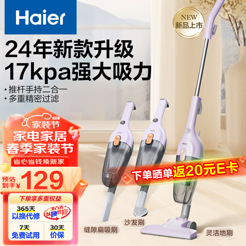 海尔吸尘器家用 有线手持推杆二合一 大功率大吸力 轻量车辆清洁 宠物毛发清洁 HZ-L8P1价格:129.00元!