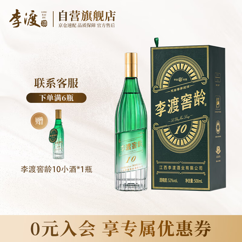 李渡窖龄10 元窖香白酒 52度500ml 单盒装价格:306.00元!
