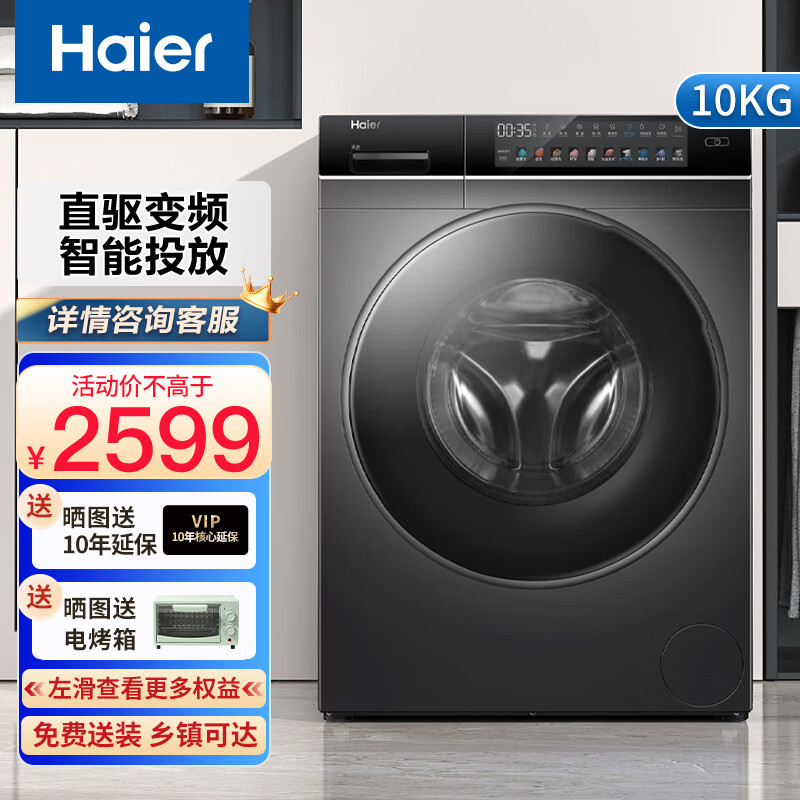 海尔10KG直驱变频滚筒洗衣机全自动 晶彩大屏玉墨银外观EG100BDC189SU1价格:5299.00元!