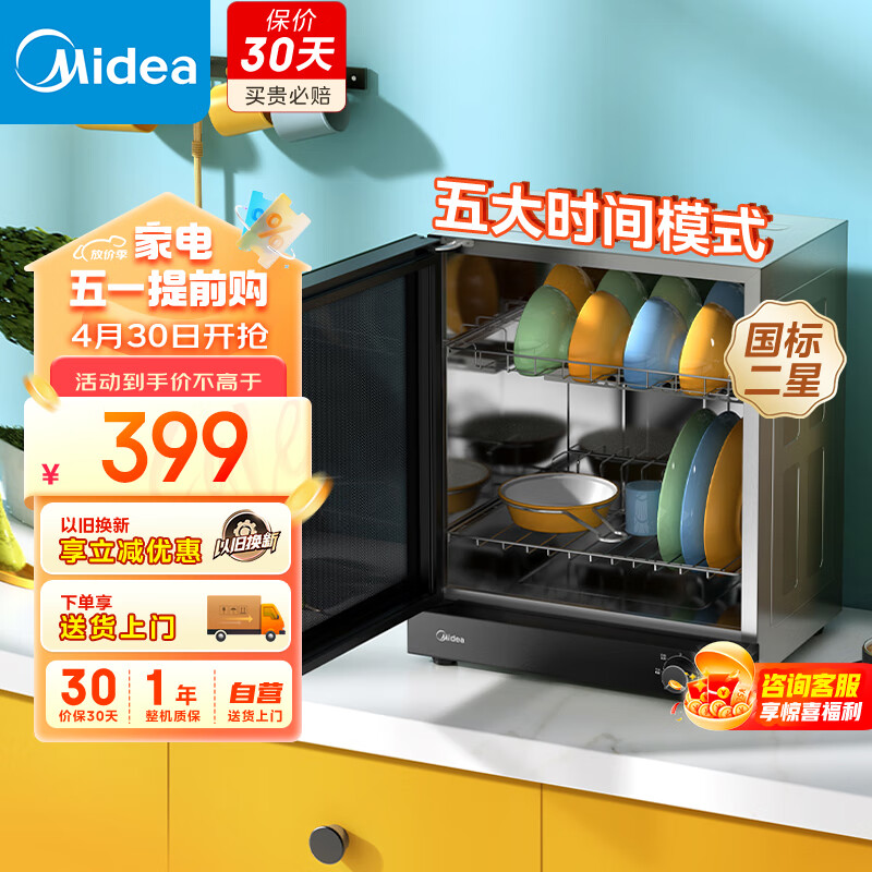 美的(Midea)消毒柜家用 厨房餐具碗柜碗筷茶杯刀具消毒器 50L双层 小型台式 高温烘干 二不锈钢50T11价格:399.00元!