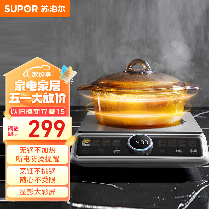 苏泊尔(SUPOR)家用电磁炉 火锅炉 2200W大功率 不挑锅具 爆炒炒菜 轻音 智能定时 多功能家用电陶炉C22-CS52价格:349.00元!