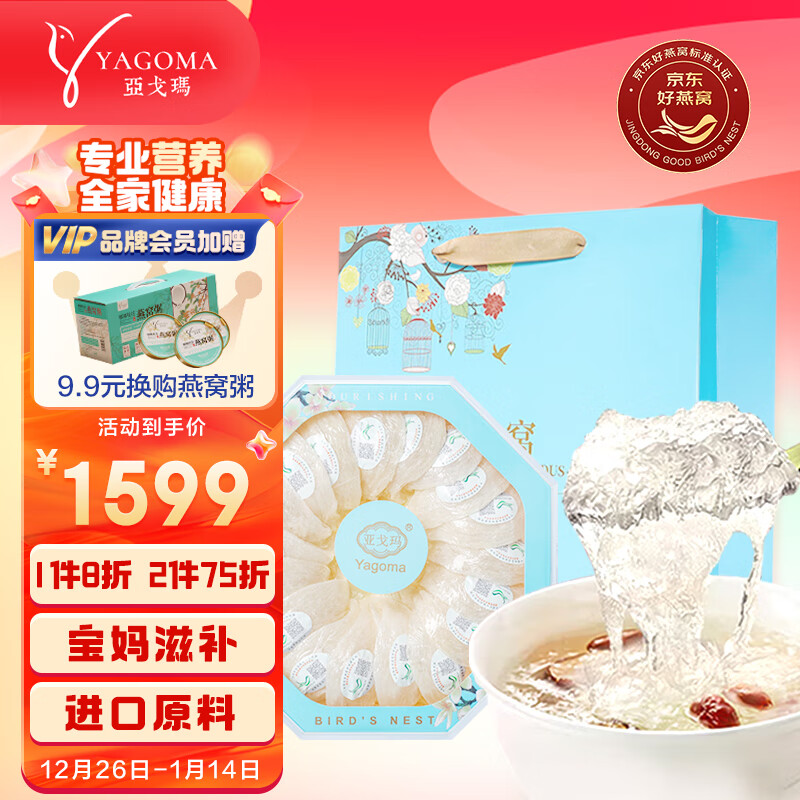 亚戈玛 溯源燕窝大盏 孕妇燕窝干盏干燕窝100g 7A溯源CAIQ一盏一码 马来印尼燕盏女性补品营养品送礼价格:2128.00元!