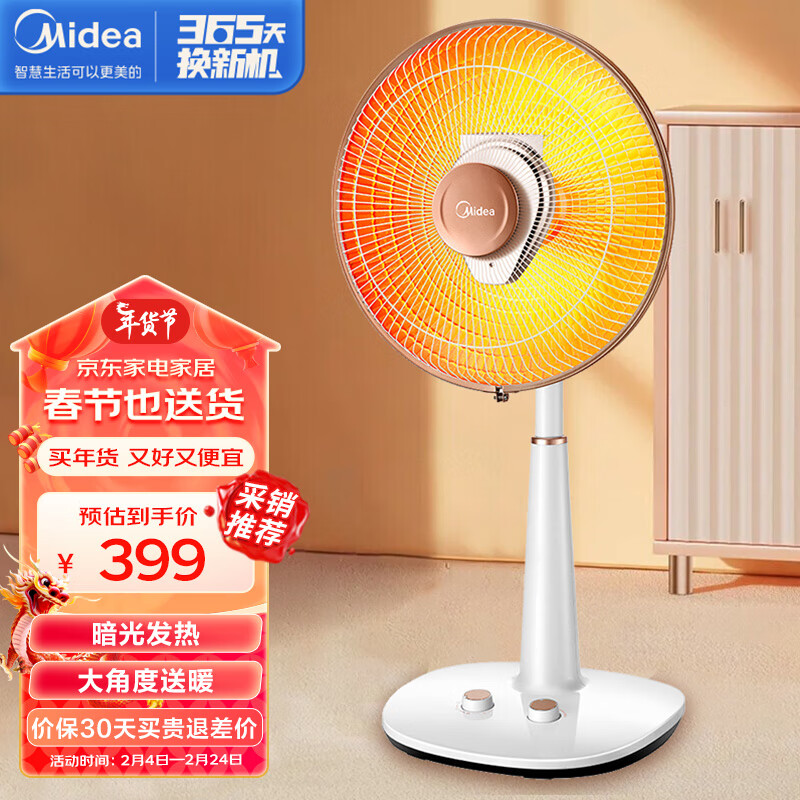 美的(Midea) NPS10-15B小太阳取暖器 烤火炉电暖器摇头升降电暖器户外办公室倾倒断电1000W大功率 (线下同款)价格:399.00元!