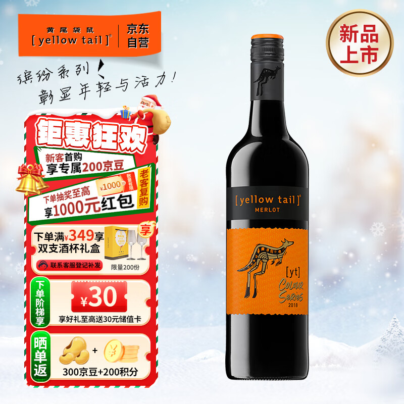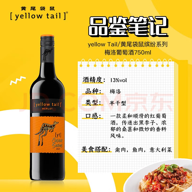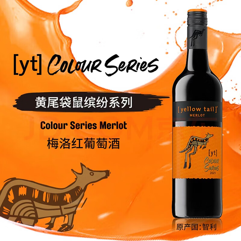 黄尾袋鼠(Yellow Tail)缤纷系列红酒 梅洛红葡萄酒智利版 原瓶进口 750ml价格:55.00元!