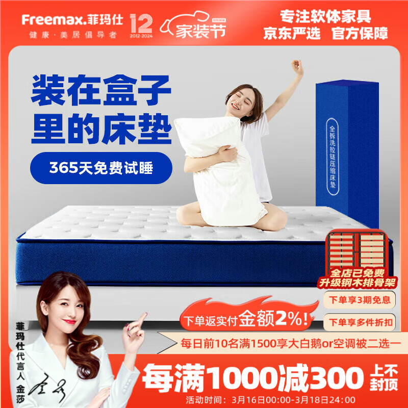 菲玛仕(freemax)海绵床垫独立袋弹簧床垫记忆棉床垫亲肤透气床垫卷包床垫1,BL2#价格:1099.00元!