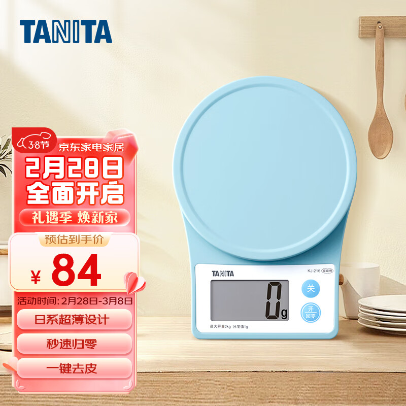 百利达(TANITA) KJ-216家用厨房秤 日本品牌电子秤克称 蓝色价格:129.00元!