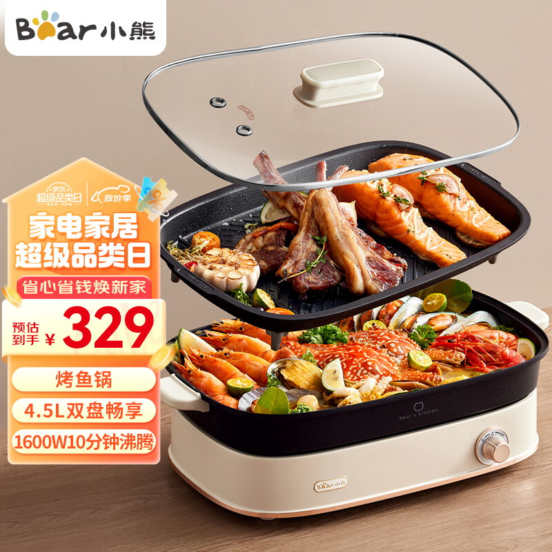 小熊(Bear)电火锅 多功能料理锅 电煮锅家用火锅专用锅烤涮一体多功能锅烤鱼锅涮肉锅火锅锅具DHG-D45G5 4.5L价格:329.00元!