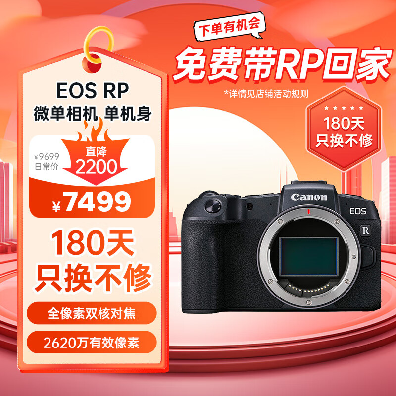 佳能(Canon)EOS RP 全画幅微单数码相机 单机身( 约2620万像素/轻巧便携)价格:7499.00元!