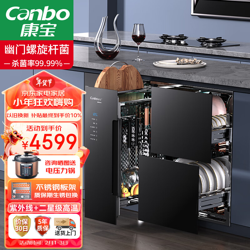 康宝(Canbo)304不锈钢 三层 智能 砧板 消毒柜 嵌入式 家用 厨房碗筷餐具母婴二星高温 消毒碗柜 XDZ110-Z1价格:4599.00元!