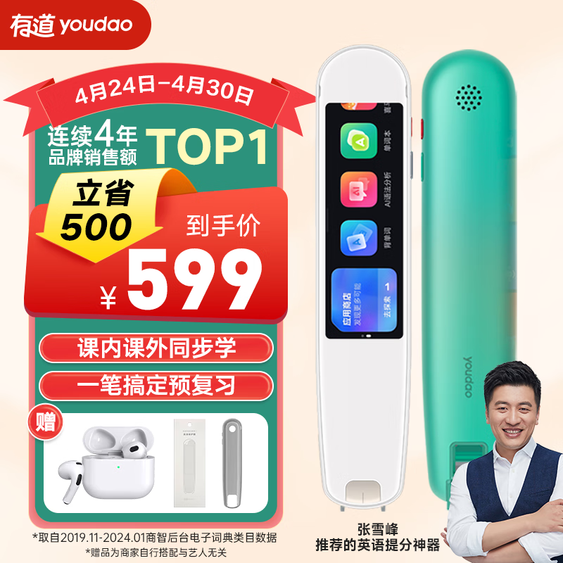 有道网易有道词典笔3旗舰版 英语学习点读笔词典笔神器 电子词典翻译笔单词笔 扫读笔 青禾绿价格:599.00元!