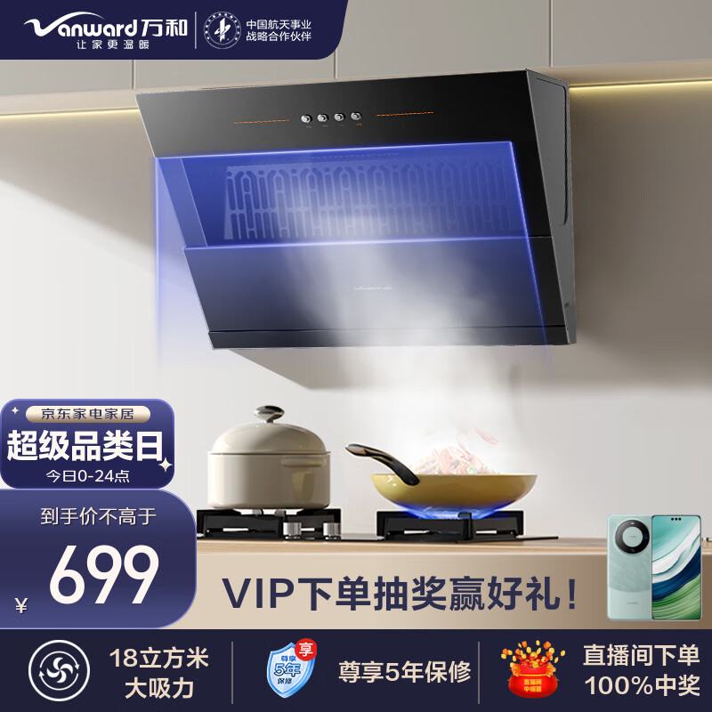万和(Vanward)侧吸式家用抽油烟机 单烟机 小尺寸大吸力 小户型老式厨房脱排钢化玻璃油烟机 CXW-260-J320A价格:699.00元!
