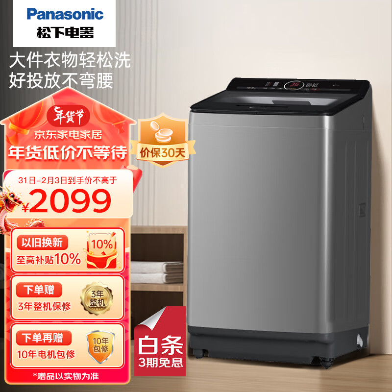 松下(Panasonic)京选家电 波轮洗衣机全自动10公斤 一键智洗大容量不弯腰 XQB100-UALTS 以旧换新价格:2099.00元!