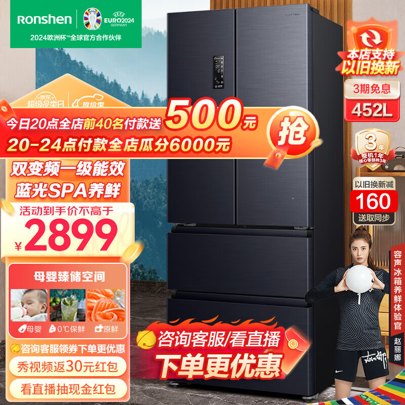容声(Ronshen)452L法式多门四开门家用风冷无霜母婴一级能效变频节能大容量智能冰箱BCD-452WD16MPA价格:3499.00元!