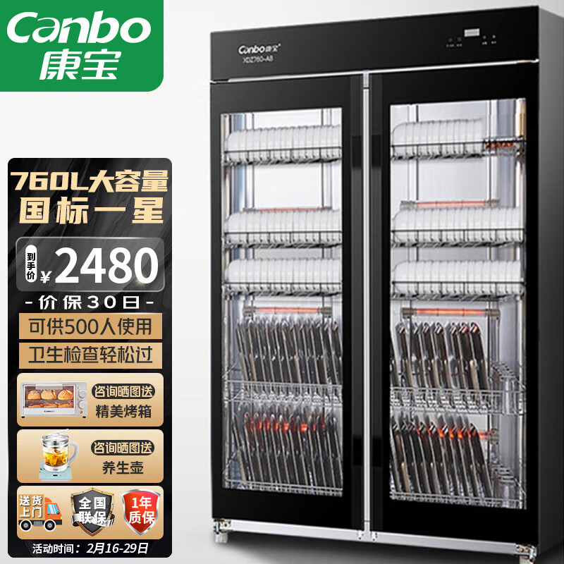 康宝(Canbo)消毒柜商用 臭氧紫外线消毒柜 立式大容量双开门不锈钢食堂饭店酒店餐饮消毒碗柜XDZ760-A8价格:2480.00元!