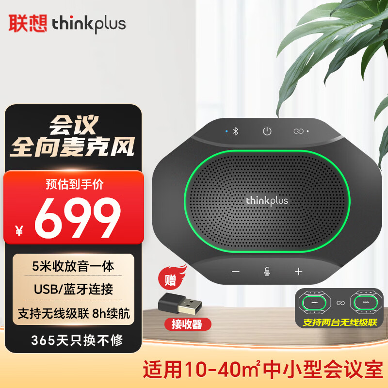 联想thinkplus视频会议全向麦克风免驱蓝牙降噪无线扬声器5米拾音器适用10~40㎡支持组队级联MK-MC600价格:699.00元!