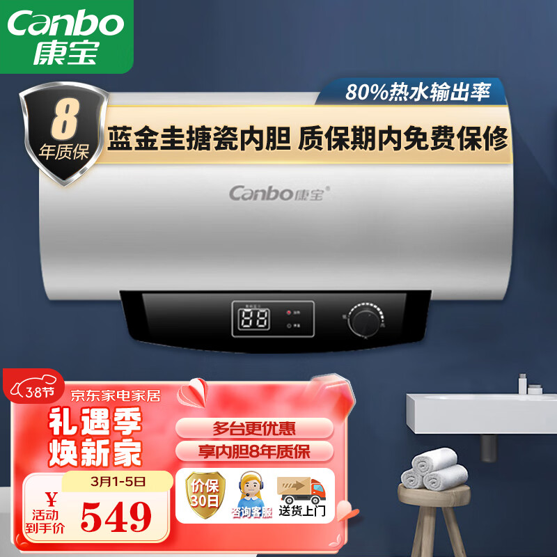 康宝(Canbo)储水式电热水器 50升大容量2000w大功率 不锈钢 家用热水器经济节能保温 CBD50-2WAXFE06价格:549.00元!