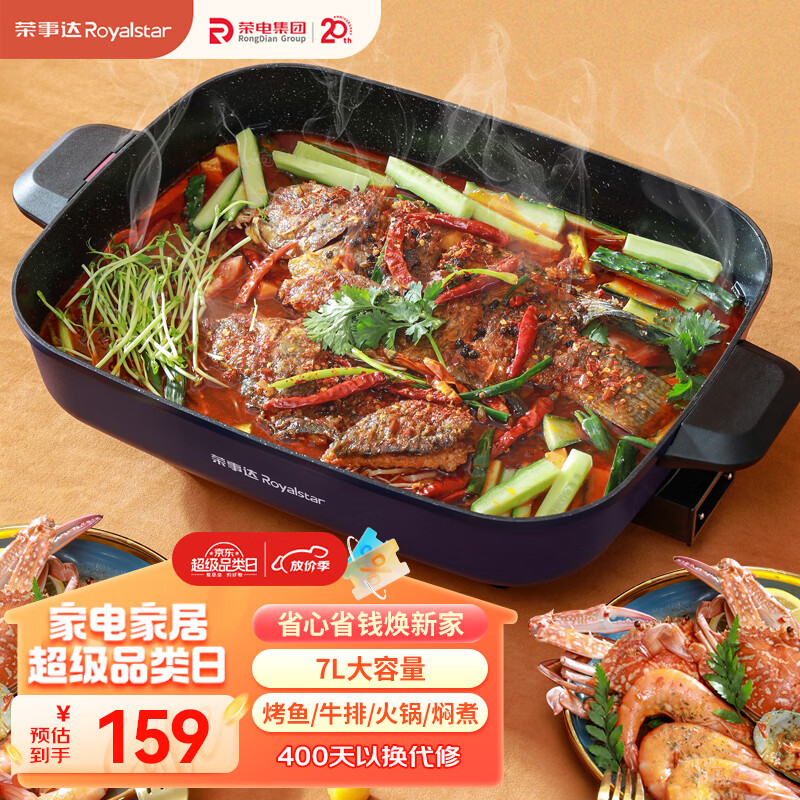 荣事达(Royalstar)电火锅家用火锅锅多功能小电锅多用途锅7L大容量电热锅煮面锅泡面锅烤肉锅电煮锅 HG16F8价格:159.00元!