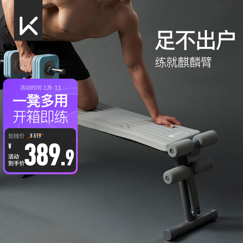 Keep多功能健身凳免安装家用多功能卧推仰卧起坐折叠健身运动专业器材价格:389.90元!