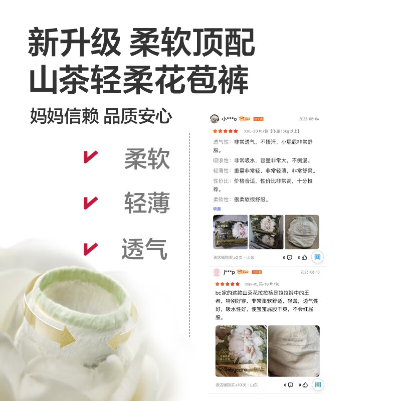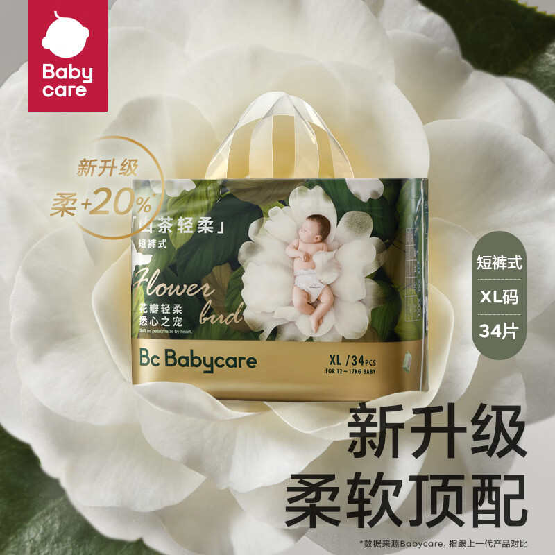 babycare拉拉裤山茶花苞裤轻柔裤XL34片(12-17kg)bbc婴儿尿不湿柔润舒缓价格:199.00元!