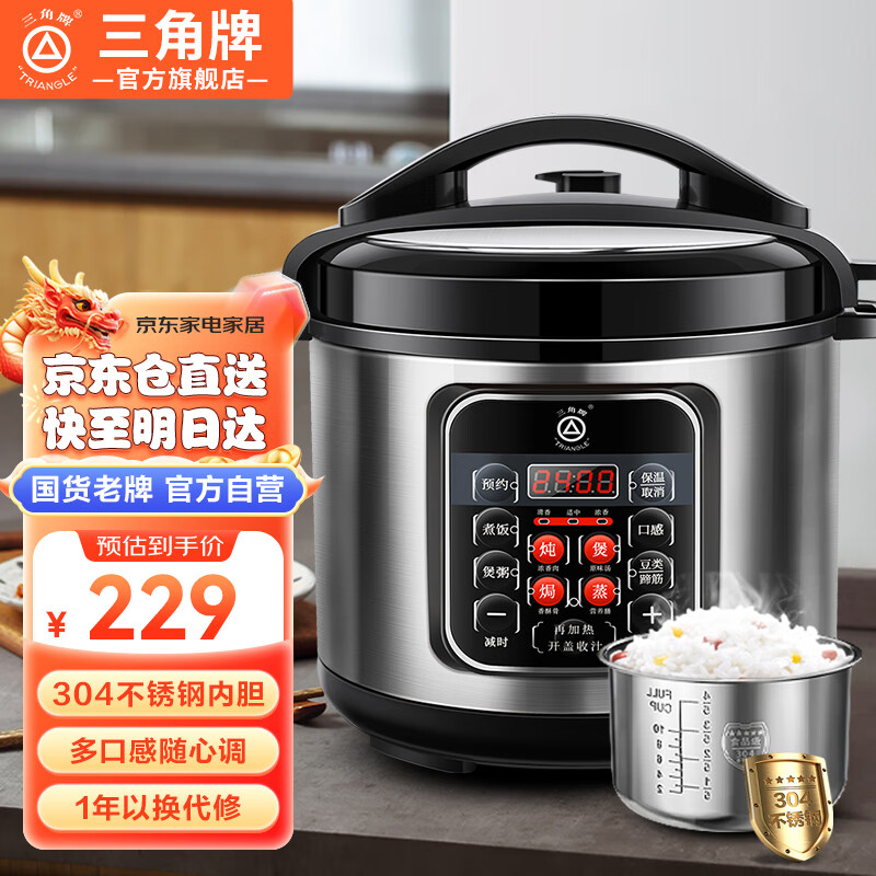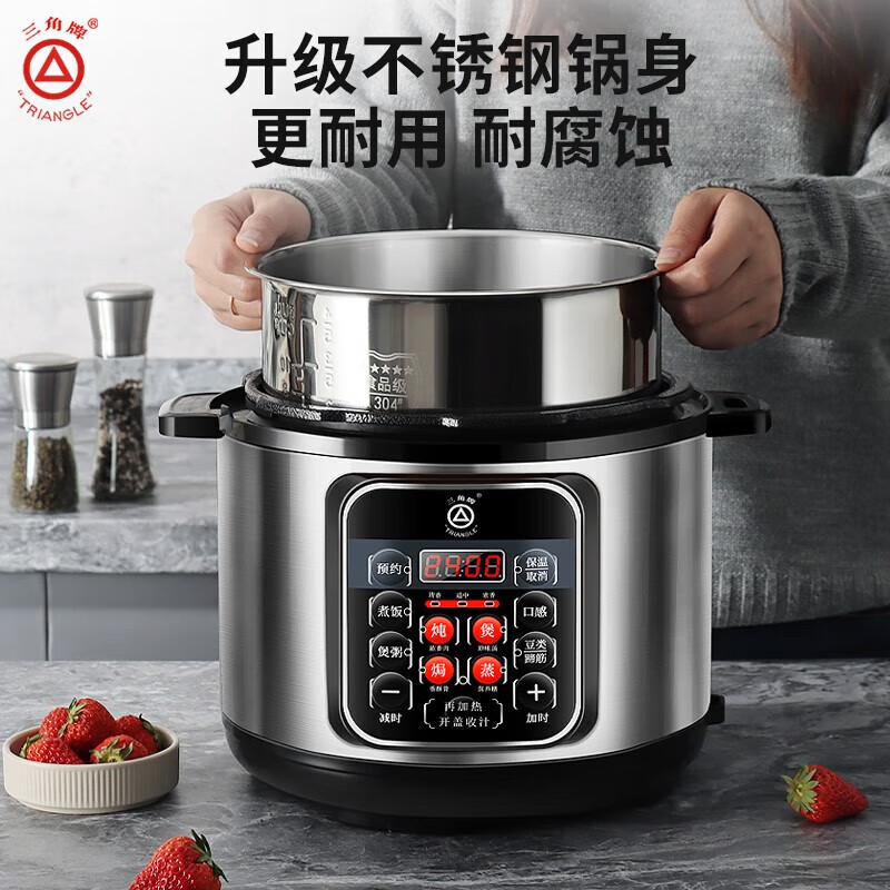 三角牌(Triangle)电锅家用大容量电高压锅不锈钢高压电饭锅智能预约多功能煲汤锅炖汤锅 304不锈钢内胆(适合4-6人) 5L价格:259.00元!