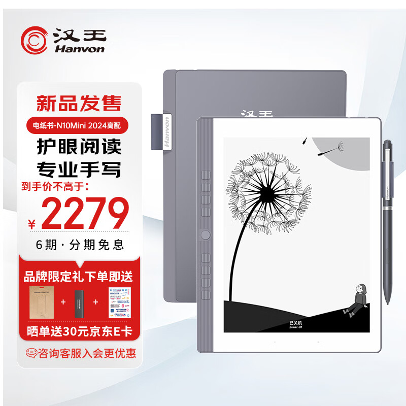 汉王(Hanvon)【张新成同款】N10mini2024 手写电纸本 7.8英寸电子书阅读器墨水屏电纸书平板电子笔记本4+64版价格:2279.00元!