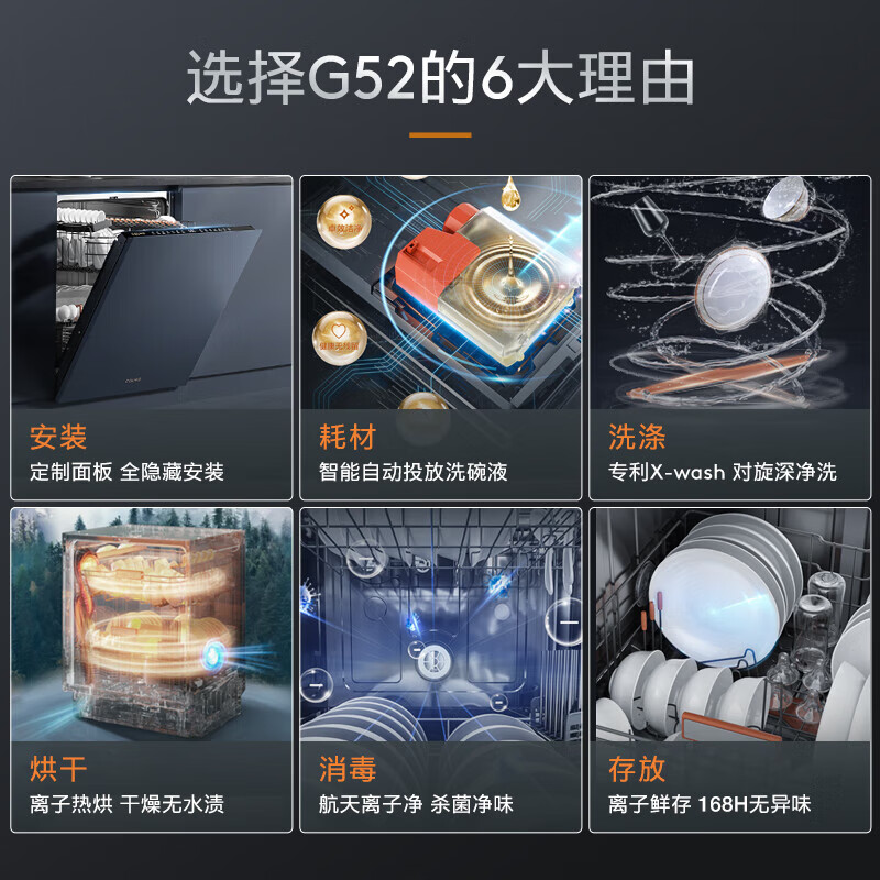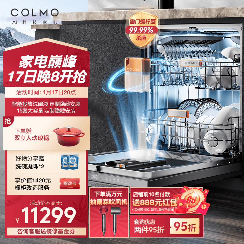 COLMO 15套洗碗机 定制面板隐藏安装 自动投放洗碗液 对旋喷淋 数字落地灯 168H离子鲜存 G52(曜石黑)价格:11299.00元!