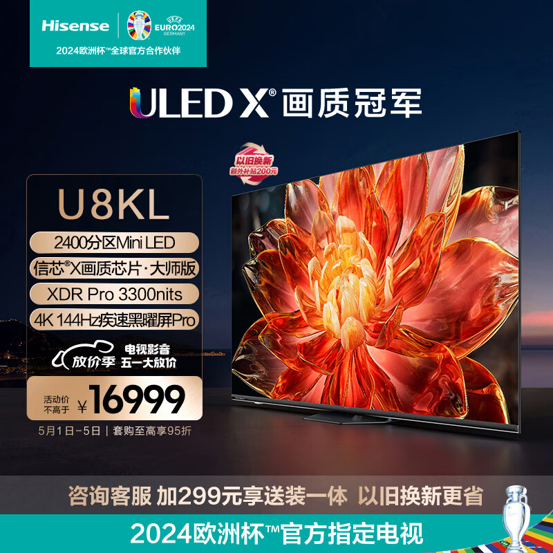 海信电视85U8KL 85英寸 ULED X 旗舰Mini LED 2400分区 3300nits 黑曜屏 PRO 液晶智能电视机 以旧换新价格:16999.00元!