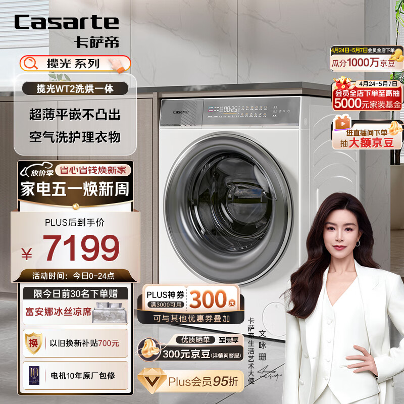 卡萨帝(Casarte)揽光WT2 滚筒洗衣机全自动 10公斤洗烘一体机 直驱变频电机 紫外除菌 超薄大筒径 光年HD10WT2ELU1价格:7499.00元!