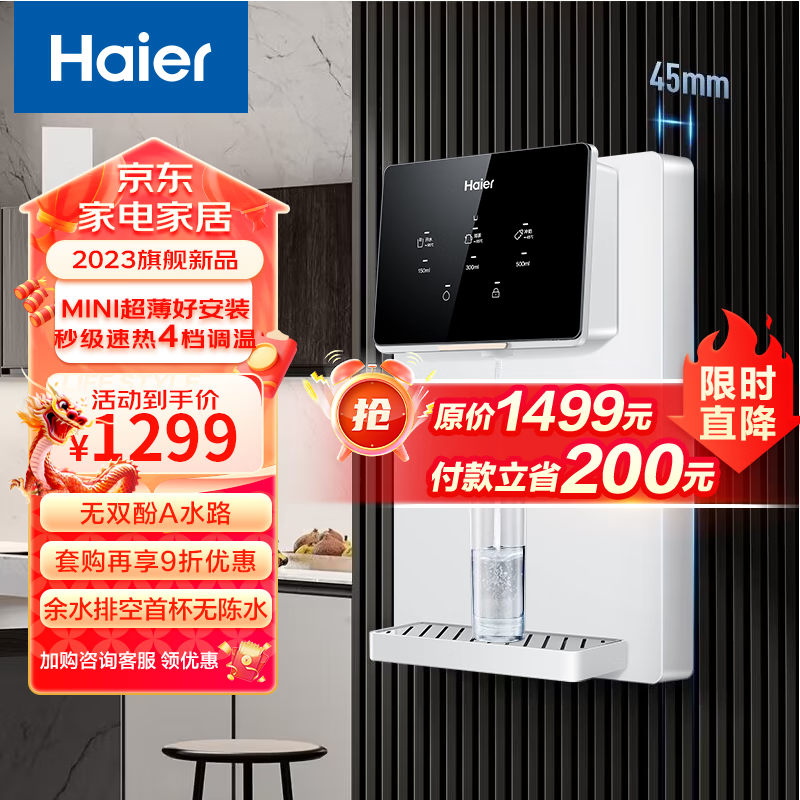 海尔(Haier)管线机 壁挂式饮水机 家用无胆即热式直饮机厚膜速热 4档水温调节净水器伴侣HGR2207价格:1299.00元!